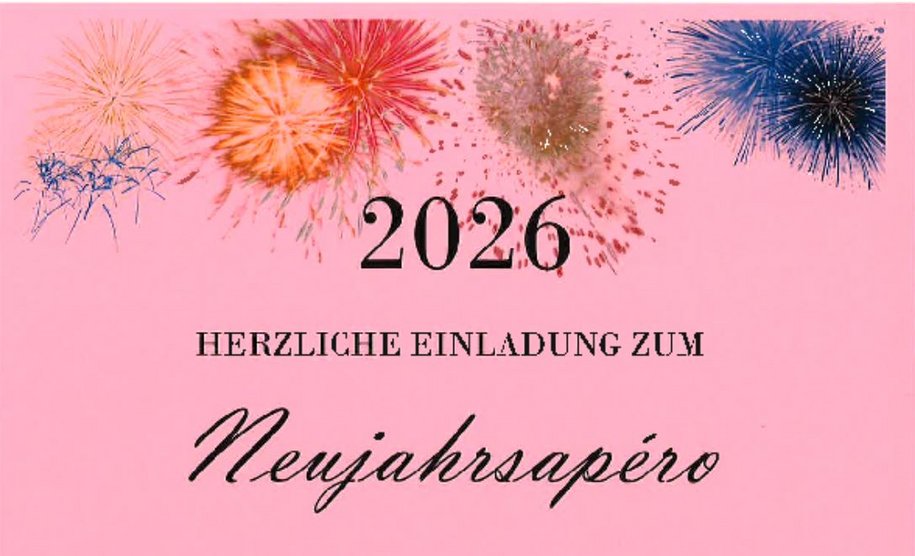 Der Gemeinderat lädt alle Einwohnerrinnen und Einwohner herzlich zum Neujahrsapéro am 4. Januar 2026, 16.00 Uhr, Halle Träff, ein.